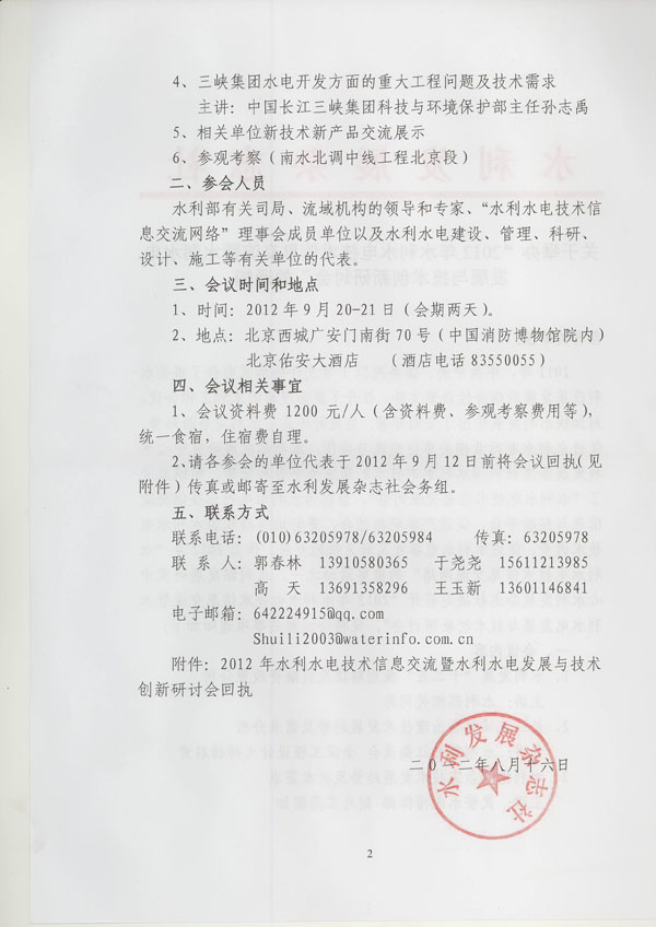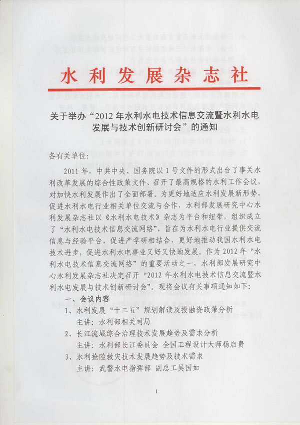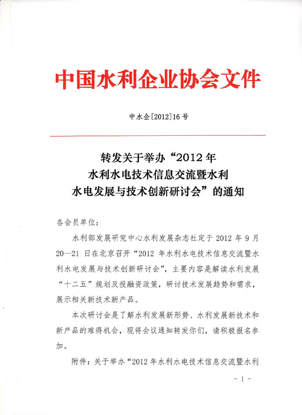 轉發關于舉辦“2012年水利水電技術信息交流暨水利水電發展與技術創新研討會”的通知