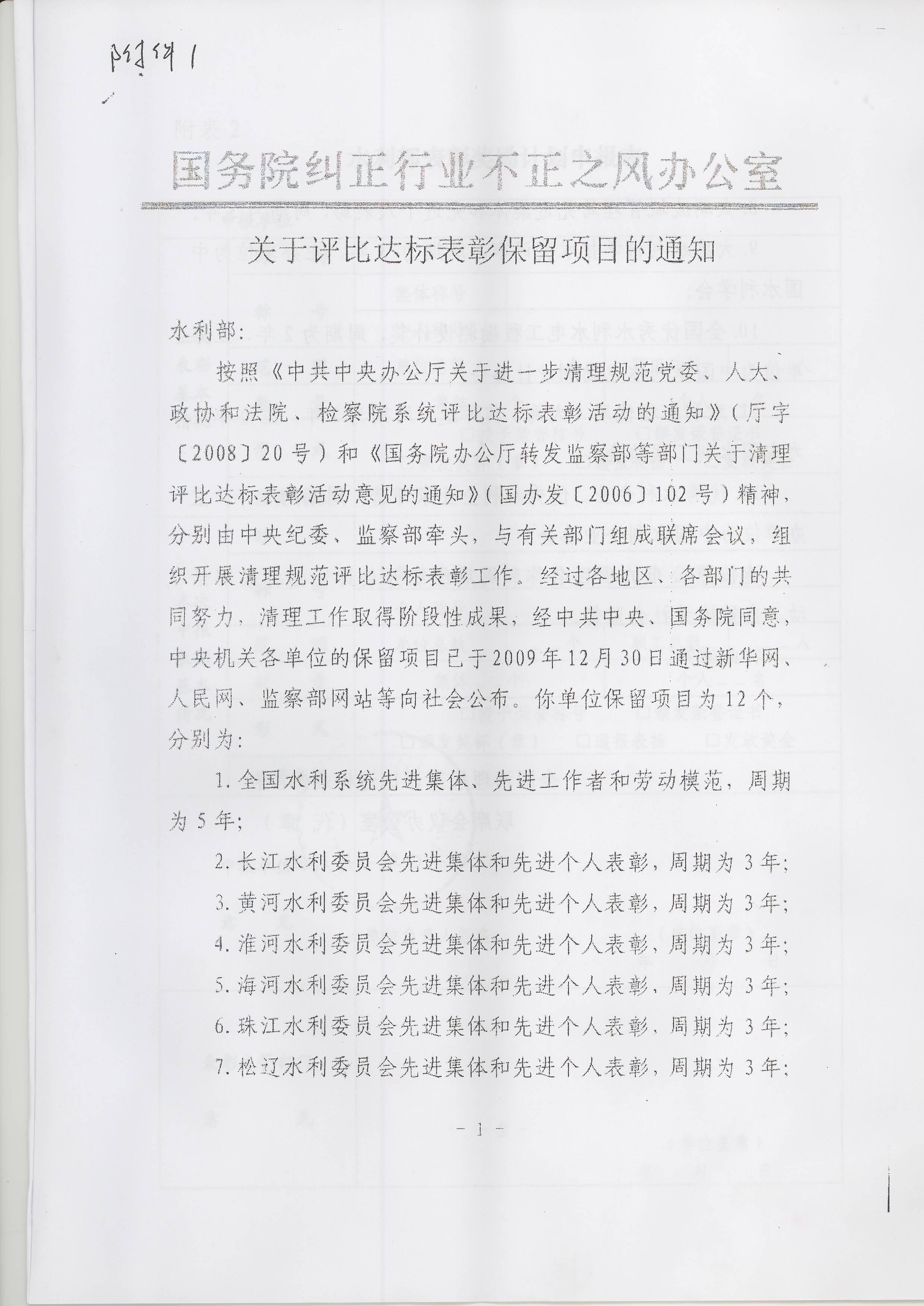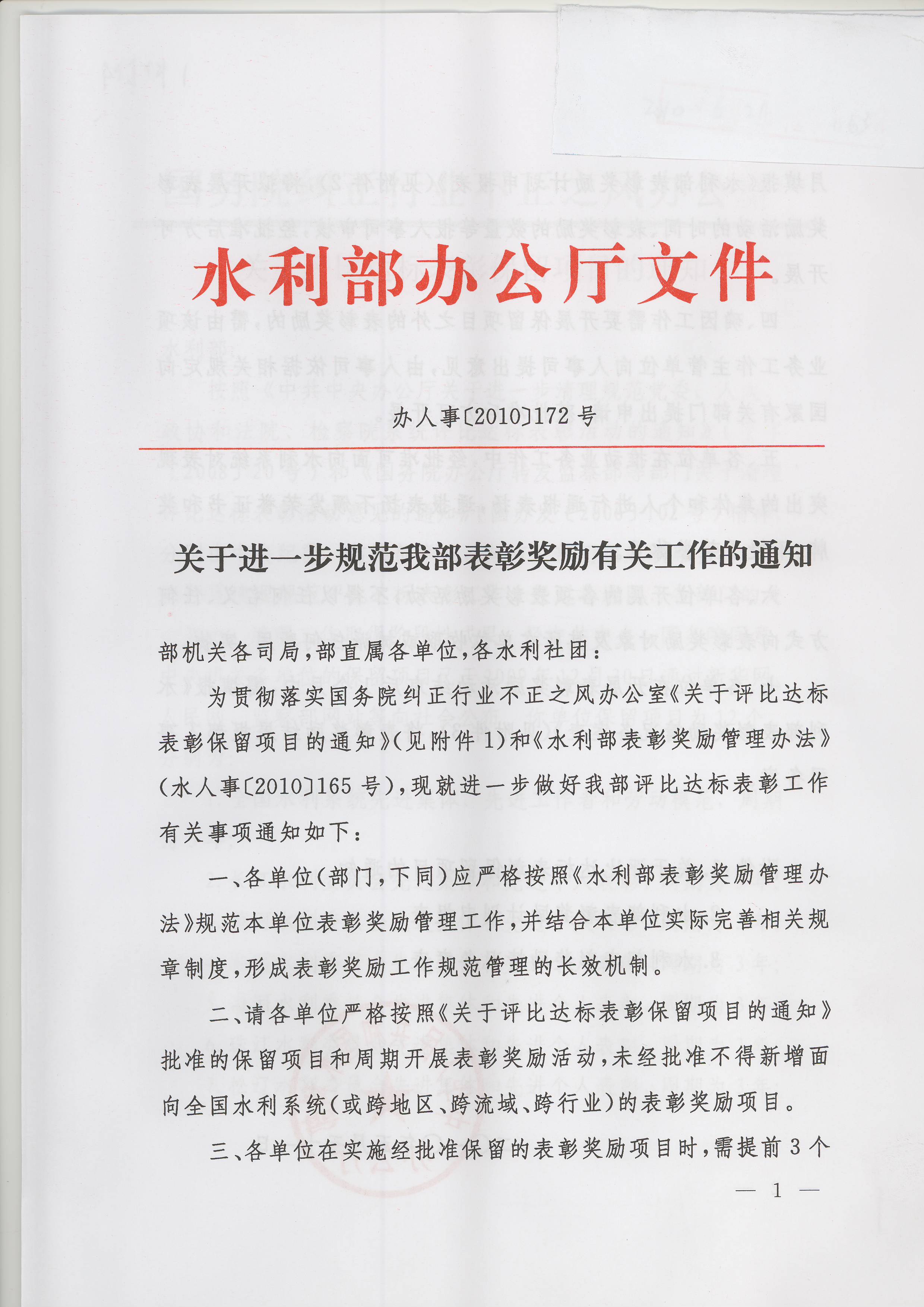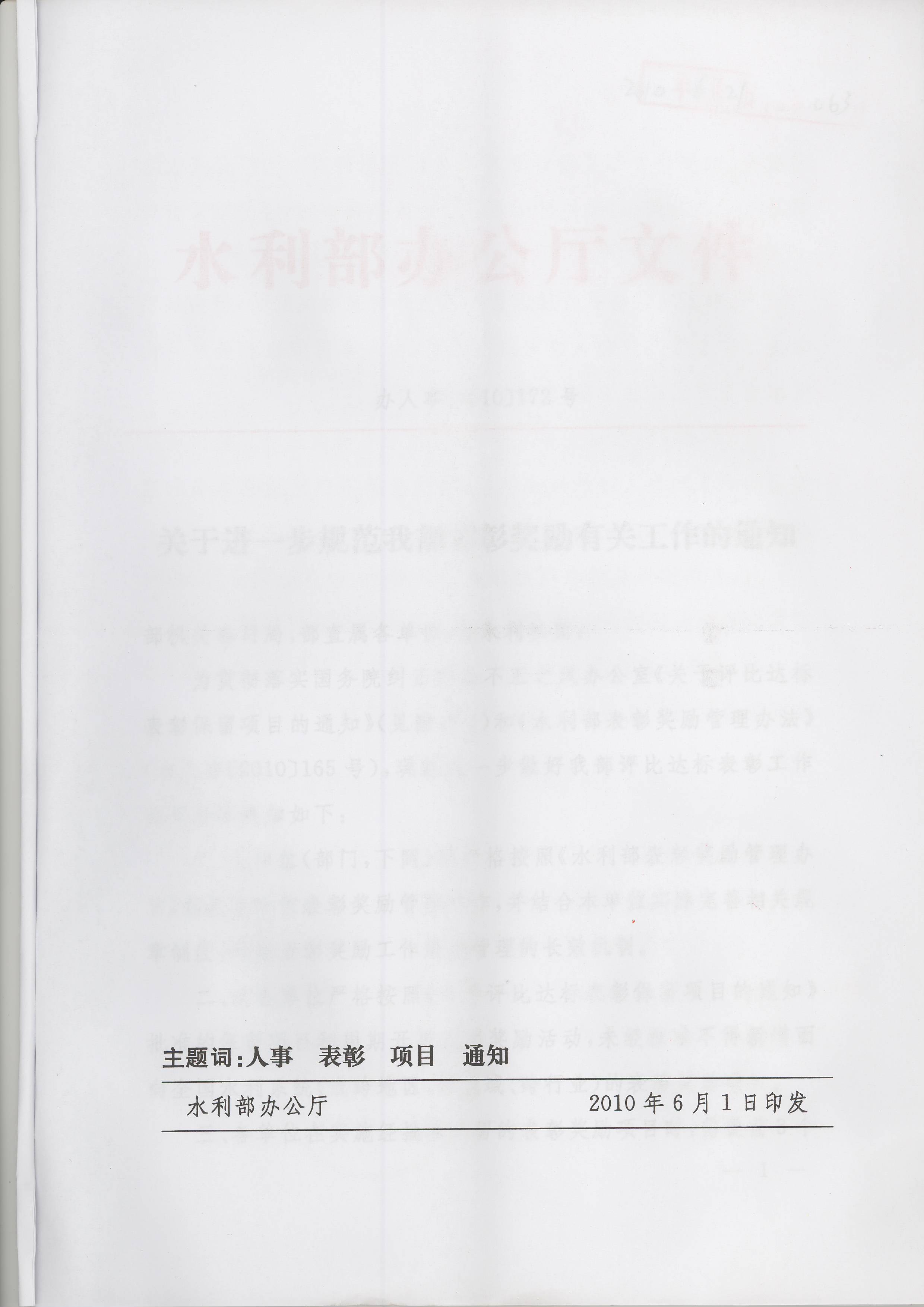 水利部《關于進一步規范我部表彰獎勵有關工作的通知》