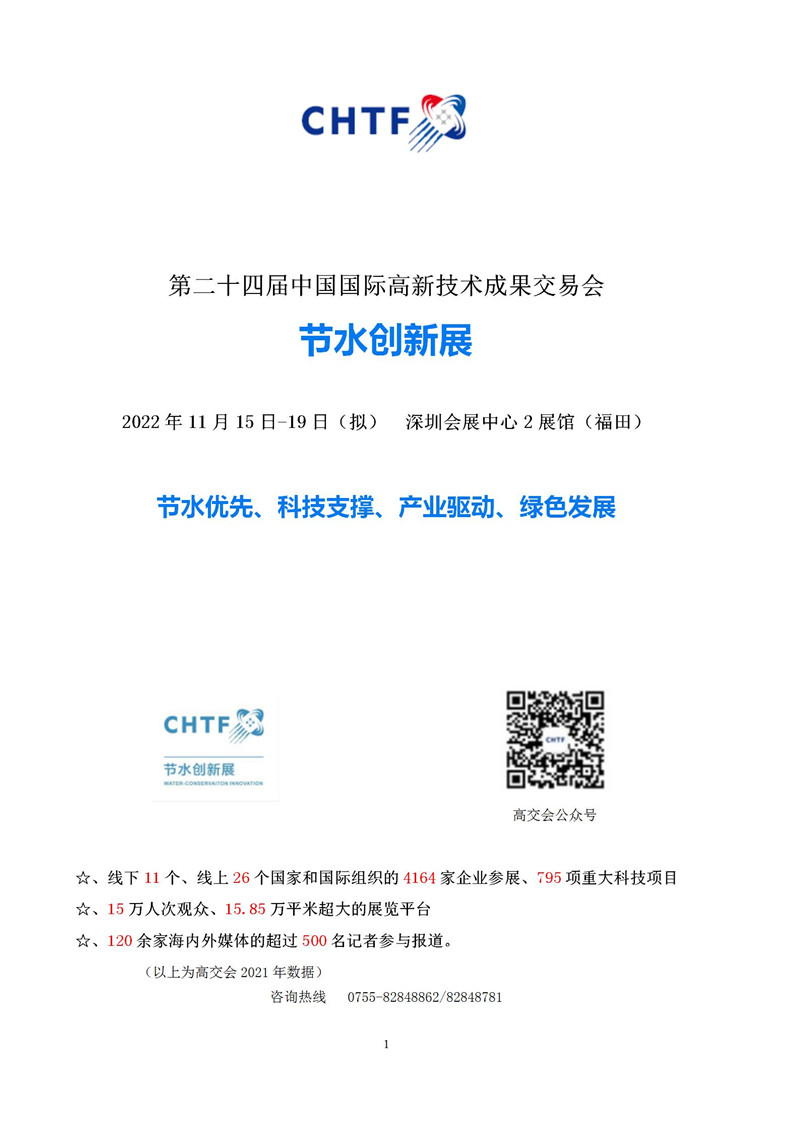 [會員信息服務]轉發第二十四屆中國國際高新技術成果交易會節水創新展招募書