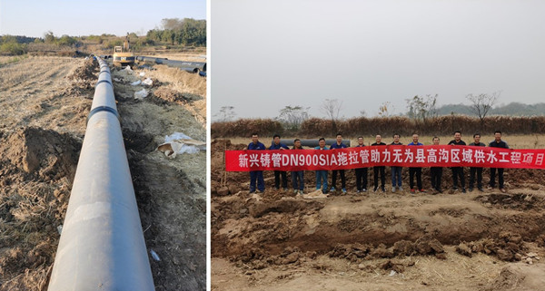 2019年11月24日,新興鑄管股份有限公司DN900SIA拖拉管在安徽省無為縣高溝區(qū)域供水項(xiàng)目成功運(yùn)用。管線全長114米,打壓1.0MPa,保壓30分鐘,一次性拖拉打壓成功。新興鑄管公司在該項(xiàng)目執(zhí)行過程中,從技術(shù)交流會(huì)、專項(xiàng)生產(chǎn)、現(xiàn)場安裝等方面與客戶進(jìn)行全流程對(duì)接。項(xiàng)目歷時(shí)2個(gè)多月,項(xiàng)目順利推進(jìn)。