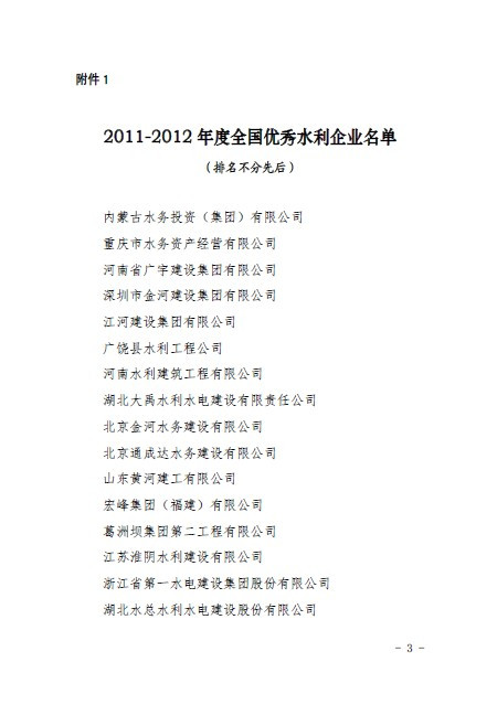 關于表彰2011-2012年度全國優秀水利企業、優秀水利企業家的通知