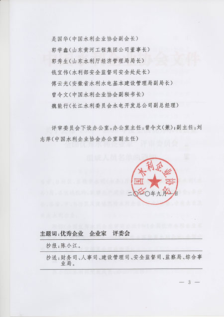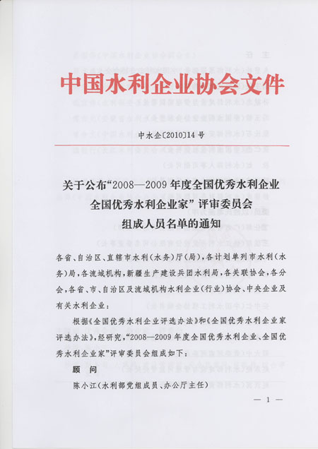 關于公布“2008—2009年度全國優秀水利企業全國優秀水利企業家”評審委員會組成人員名單的通知