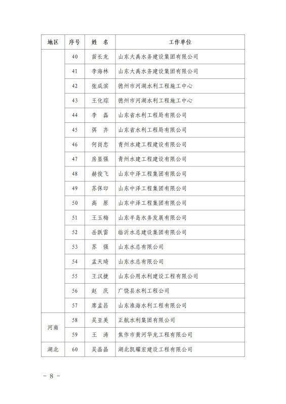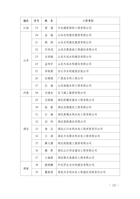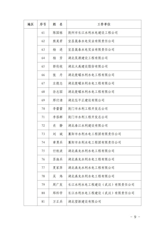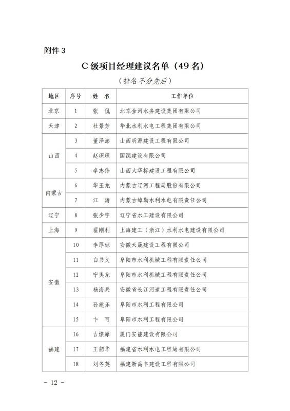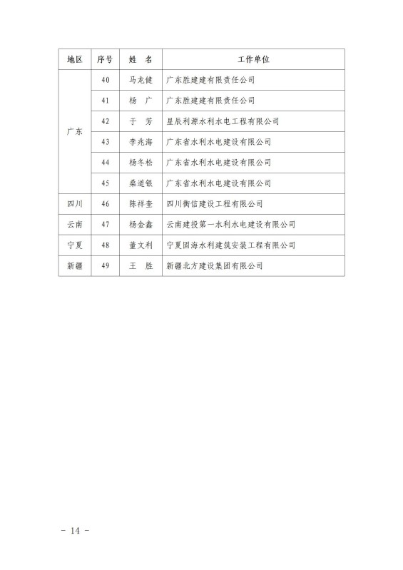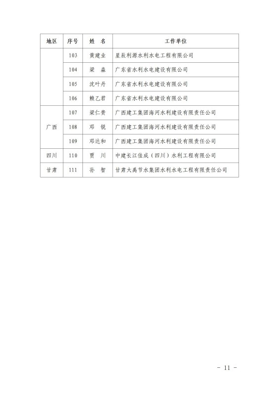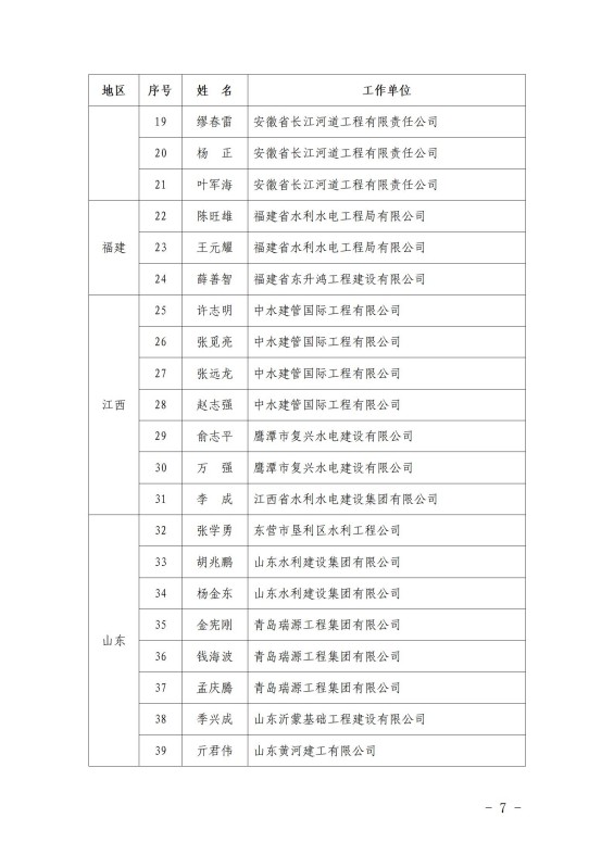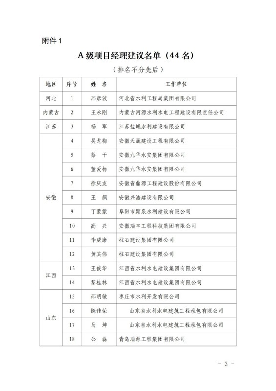 根據《關于開展2025年水利水電工程施工項目經理評價工作的通知》(中水企函﹝2025﹞18號)和《水利水電工程施工項目經理評價規程》(T/CWEC 23-2021),經評價委員會會議審議,確定44名同志(名單見附件1)為水利水電工程施工A級項目經理、111名同志(名單見附件2)為水利水電工程施工B級項目經理、49名同志(名單見附件3)為水利水電工程施工C級項目經理,現予以公示。