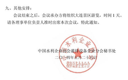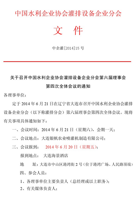 關于召開中國水利企業(yè)協會灌排設備企業(yè)分會第六屆理事會第四次全體會議的通知