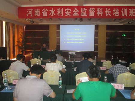 ??? 2013年5月21-22日,馮玉祿秘書長受河南省水利廳的邀請赴許昌為水利安全監督科長培訓班作專題講座。培訓班由河南省水利廳副巡視員燕國銘主持。河南省各轄市、省直管試點縣水行政主管部門及廳屬有關單位安全監督部門負責人共計70余人參加了本次培訓。