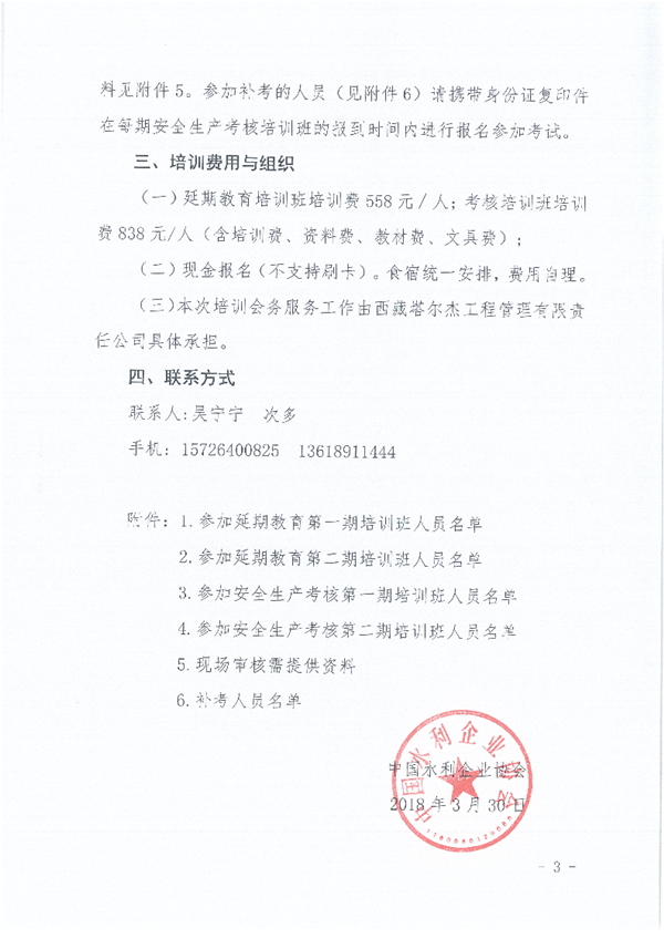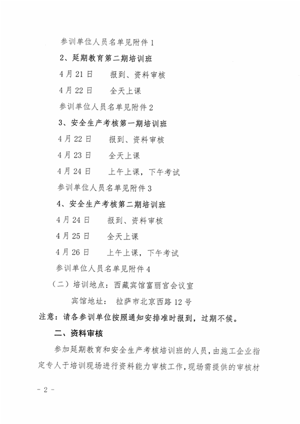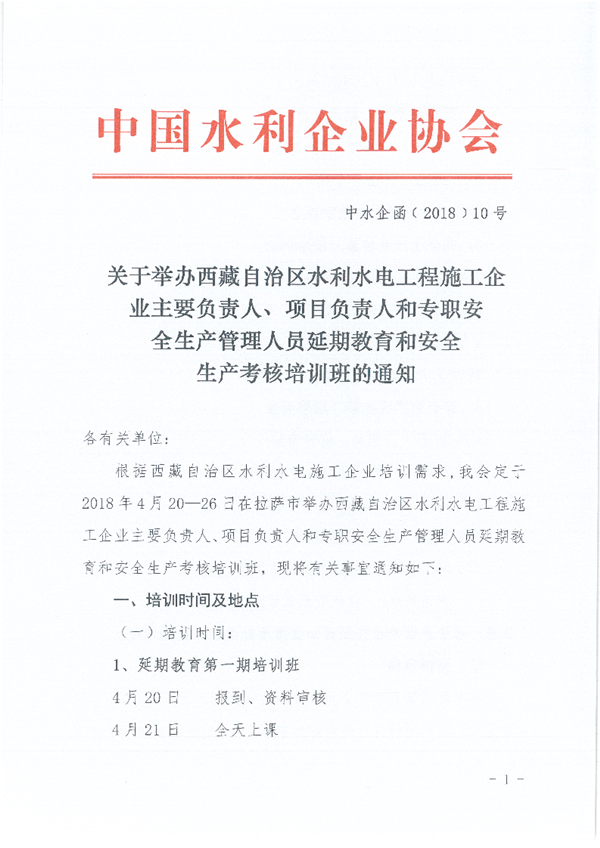 關于舉辦西藏自治區水利水電工程施工企業主要負責人、項目負責人和專職安全生產管理人員延期教育和安全生產考核培訓班的通知