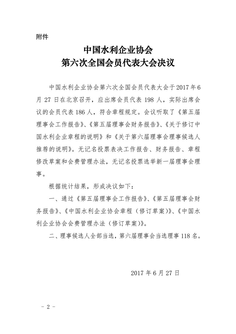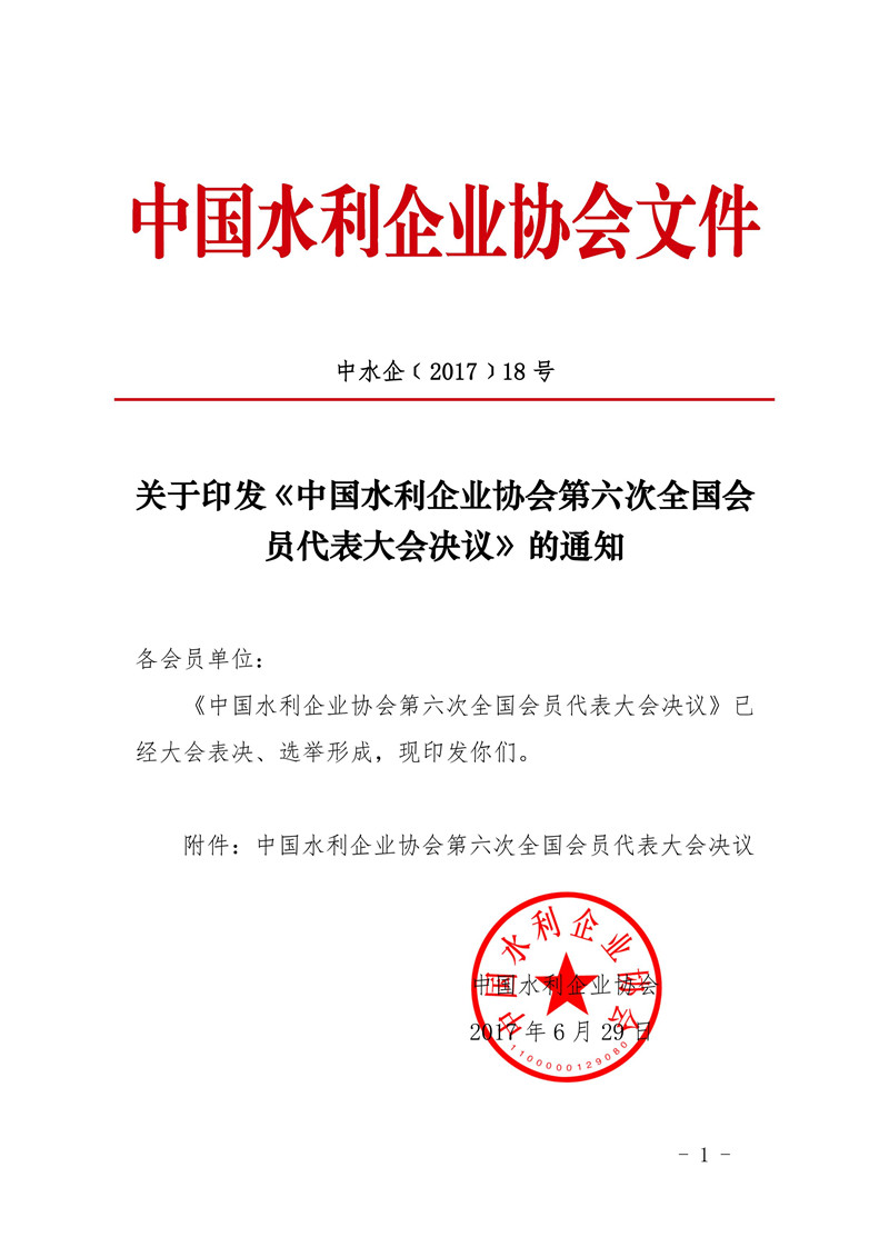 關于印發《中國水利企業協會第六次全國會員代表大會決議》的通知