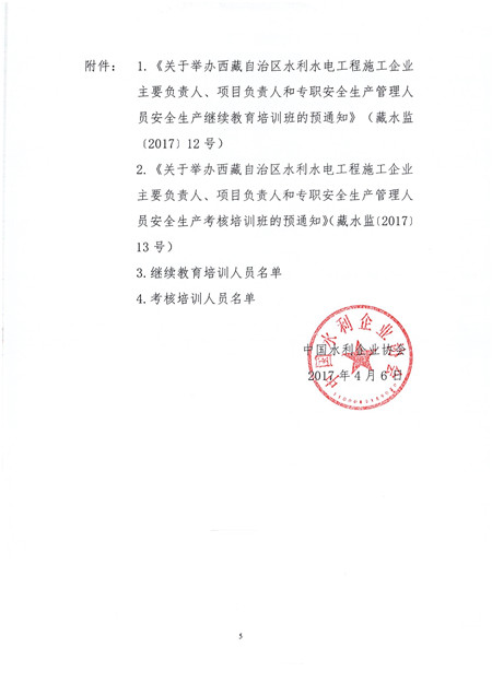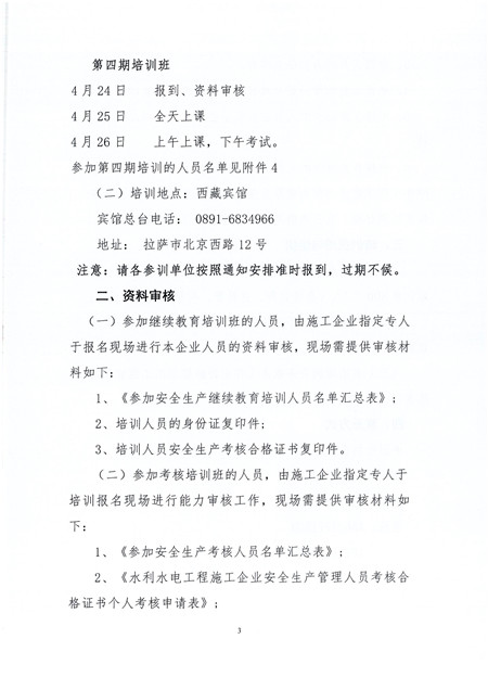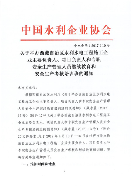 關于舉辦西藏自治區水利水電工程施工企業主要負責人、項目負責人和專職安全生產管理人員繼續教育和安全生產考核培訓班的通知