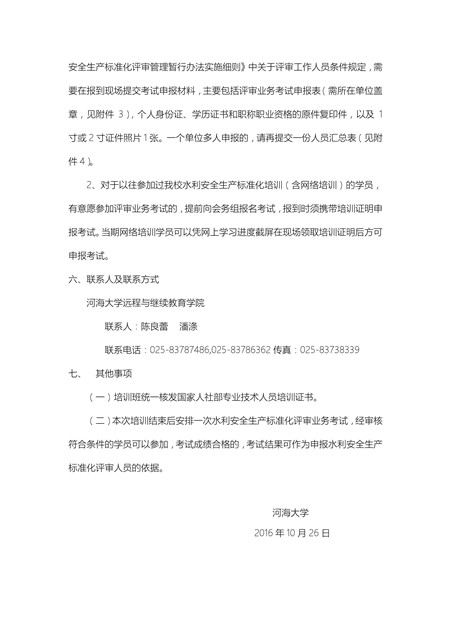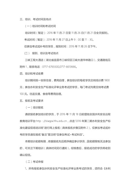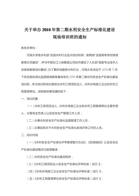 關于舉辦2016年第二期水利安全生產標準化建設現場培訓班的通知