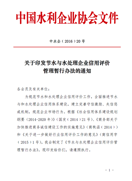 第六條 中國水利企業協會組織制定節水與水處理企業信用評價標準(見附件),明確信用評價的指標體系、評分標準等內容,并向社會公布。