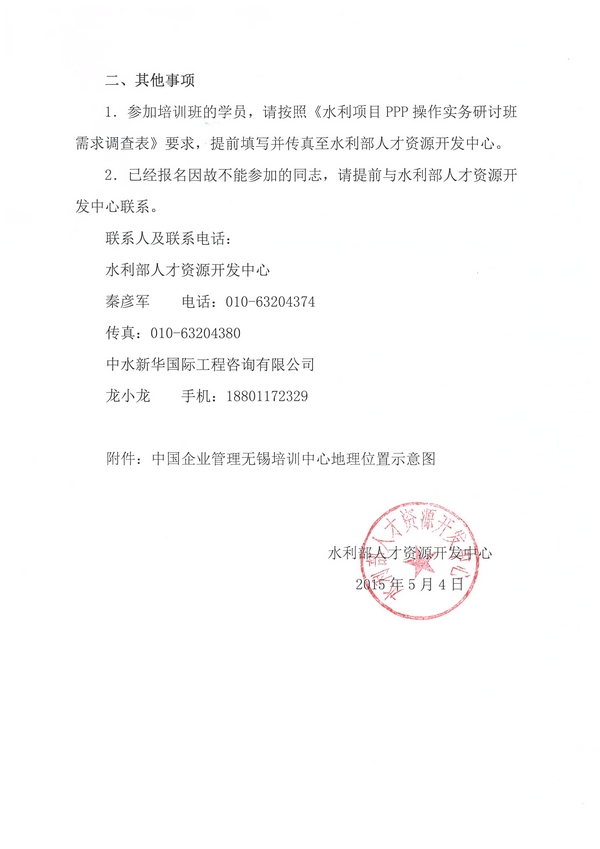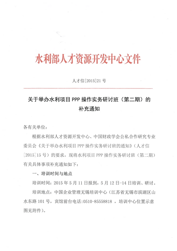 關于舉辦水利項目PPP操作實務研討班(第二期)的補充通知
