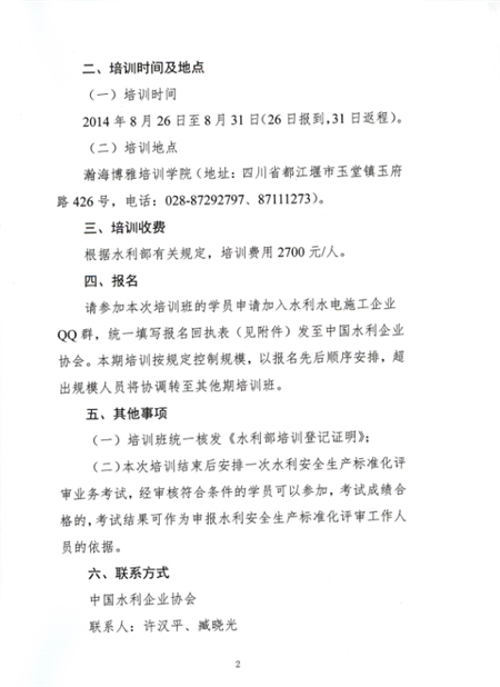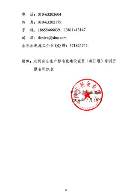 關于舉辦水利安全生產標準化建設宣貫(都江堰)培訓班的通知