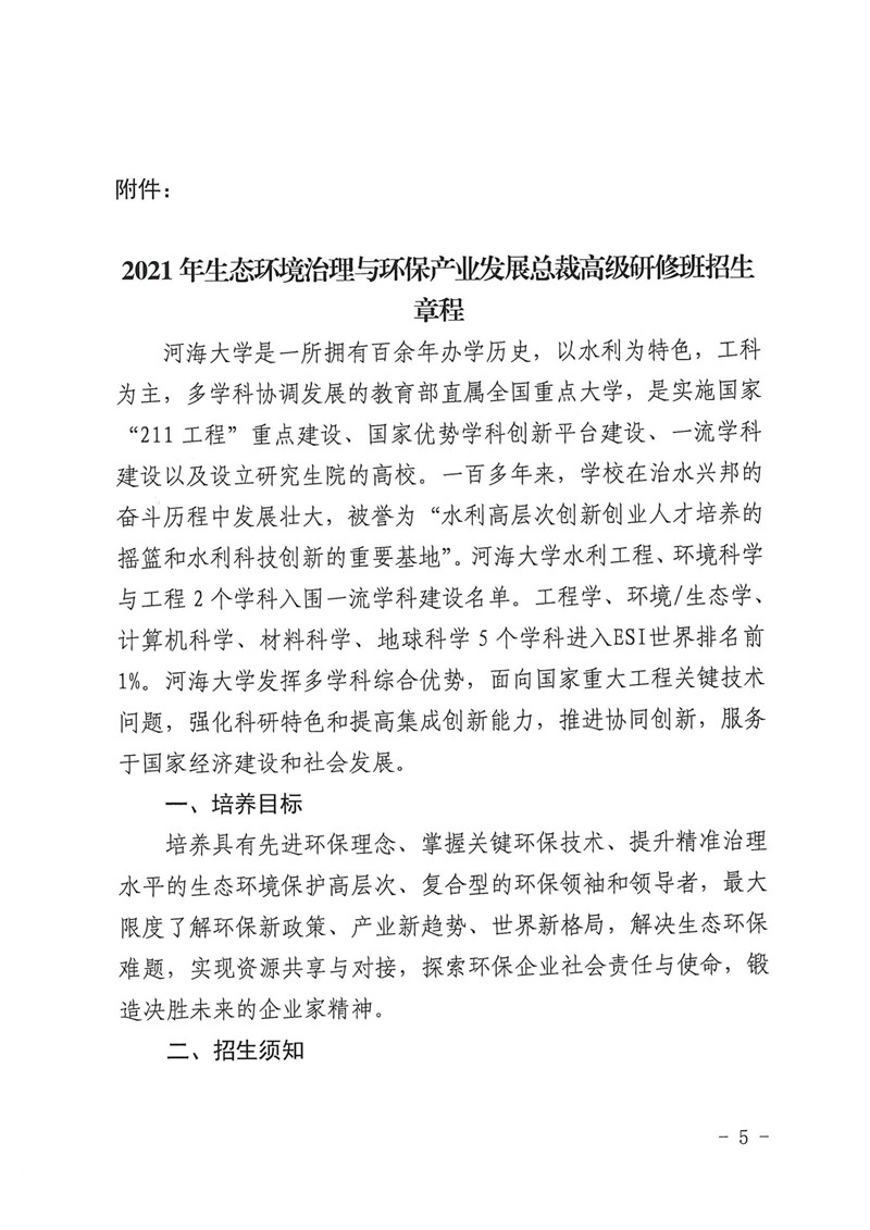 (轉發)關于舉辦2021年生態環境治理與環保產業發展總裁高級研修班的通知