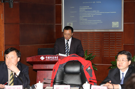 ????開(kāi)幕式由中歐水資源交流平臺(tái)秘書(shū)處中方秘書(shū)長(zhǎng)、水利部國(guó)際合作與科技司郝釗處長(zhǎng)主持。顧洪波會(huì)長(zhǎng)、歐盟駐華代表處貿(mào)易官員Laurent Javaudin致辭。
